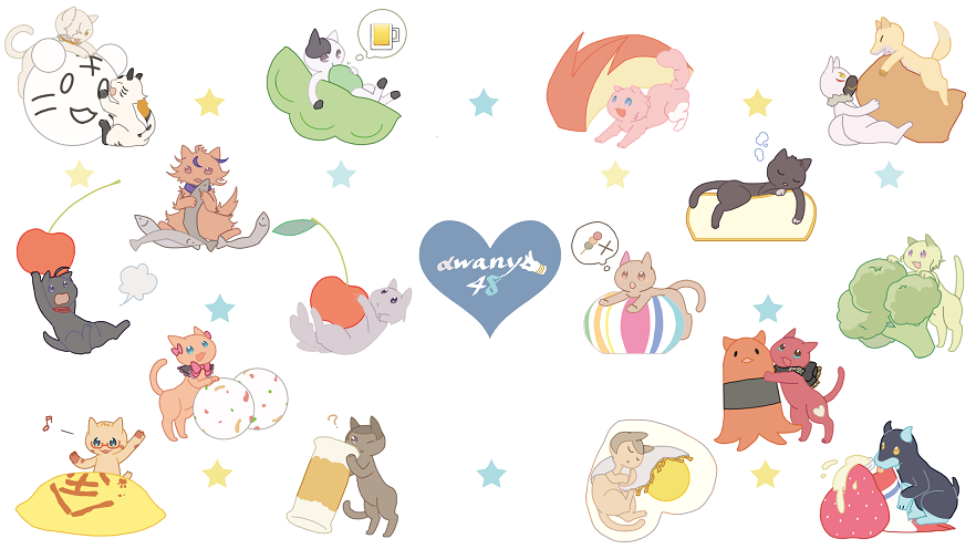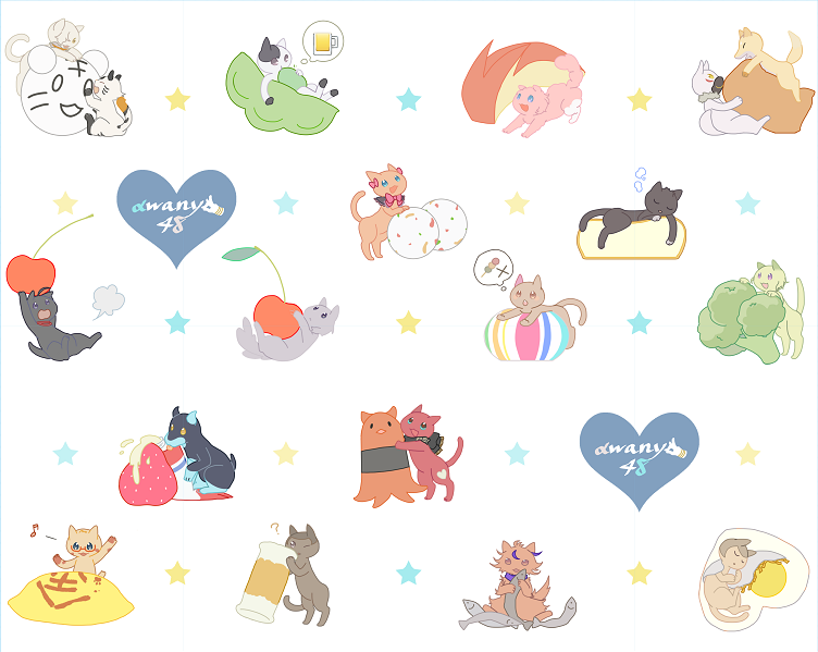 試作した今日何?と配置は変わらないのでキャラ数的に穴になるところは粟にゃロゴで埋める形にしてあります。サーモボトルになった時に見える範囲はほぼ今日何?と同じだと思うんですがハートに比べて星が小さめなのがどう出るかなってところです。可愛く仕上がってくれると良いんだけど…。