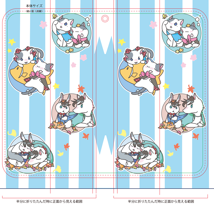 沖田・土方組で春夏秋冬。ブック型カバー・折りたたみ時サイズ:145×74mm。(原稿サイズでの画像のため出来上がりは絵ギリギリくらいの所で断裁(?)となります。)