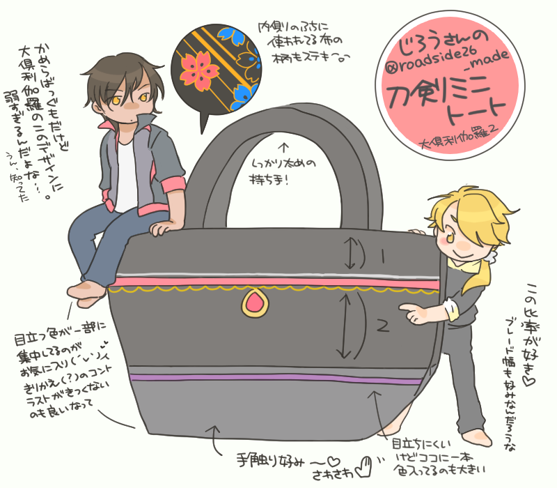 他にも種類自体は沢山有ったんですがデザインはこれが一番好みで。通販戦争勝てて良かったです。あとは次回予定の土方組がどうかなって…。どうか…な…。デザイン買いの人だけど出来れば好きなキャラの持ちたいじゃないですか。(今回あんみつ有ったけど大倶利伽羅の上を行くことなく終わった。)しかし問題はそんなに鞄増やしてどうするんだってところです。今有りすぎですorz このサイズはそんなに数あっても困るだけなの分かってるでしょ?!っていう。ポシェットかトートサイズでポケットが有るのが一番使い勝手良くて助かるから;