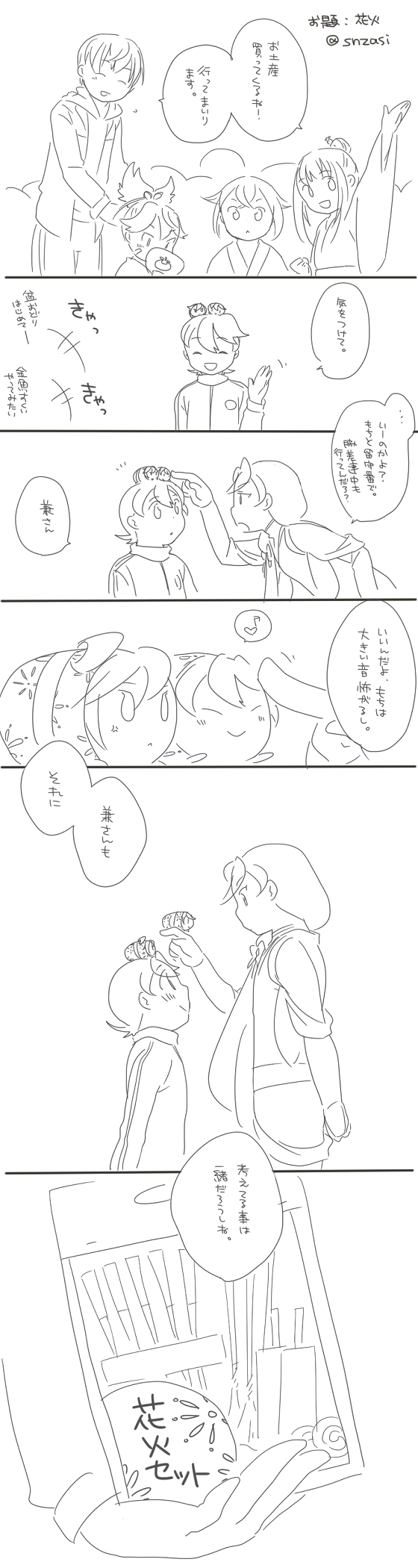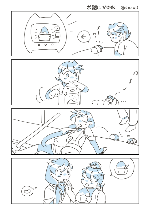 実はこの後、自分の分は最後でいいやと冷蔵庫で兼さんに持ってるのを渡しもちの分を食べさせてやって…というお母さんみたいな事やってるので兼さんが自分の分を国広と交互に食べるというオチを考えてました。
