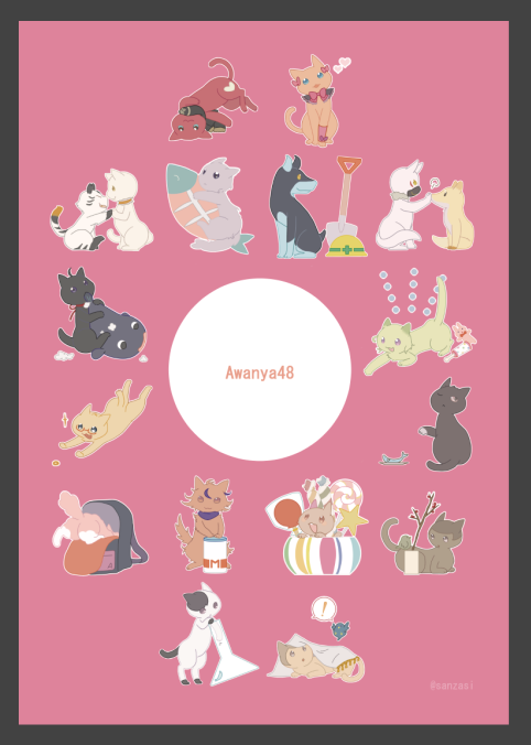 新しいの描いてる余裕なんぞ無いのでちょびっとだけ手を加えて使いまわし。(画像は印刷サイズのスクショです。塗り足しが有るので実際はもうちょい小さい仕上がりになります。)1種/用紙ランダムの印刷らしいんですが通常印刷は最低ロットの問題でちょっと頼みにくいので丁度良いかな~と。印刷見本的なものが目的のキャンペーンだとは思うんですが、発注時の参考に手元に置くよりは何かの時に同封したりしようかなと思ってます。